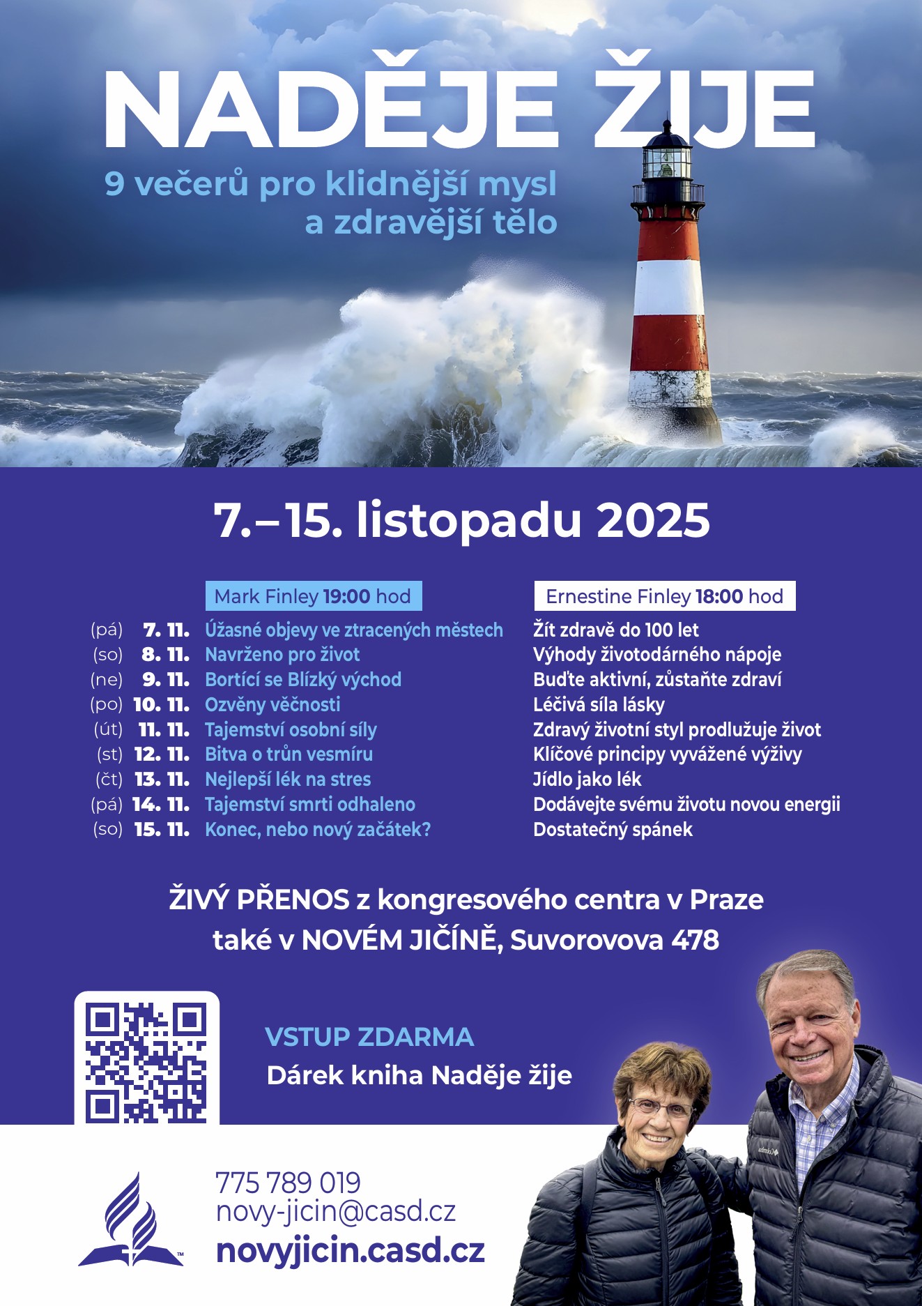 Rádi bychom Vás pozvali na mimořádná živá setkání v sérii programu „NADĚJE ŽIJE“ u nás v Novém Jičíně, Suvorovova 478.Veřejné setkání se koná každý den od 7. do 15.11.2025 vždy od 18h.
